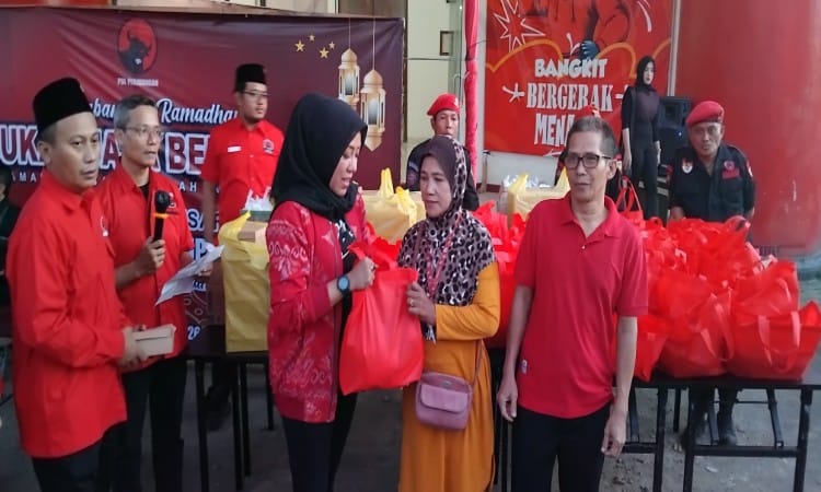 Aksi sosial tersebut dilakukan di halaman kantor PDI Perjuangan Cilacap pada Rabu (18/3/2026). Selain sembako, ada juga takjil yang dibagikan untuk membatalkan puasa pada saat berbuka.