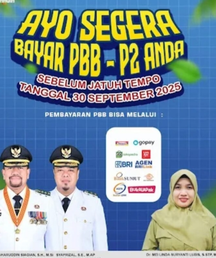 Central Publikasi.Com-Batu Bara:masyarakat untuk segera melakukan pembayaran Pajak Bumi dan Bangunan Perdesaan dan Perkotaan (PBB-P2) sebelum jatuh tempo pada 30 September 2025