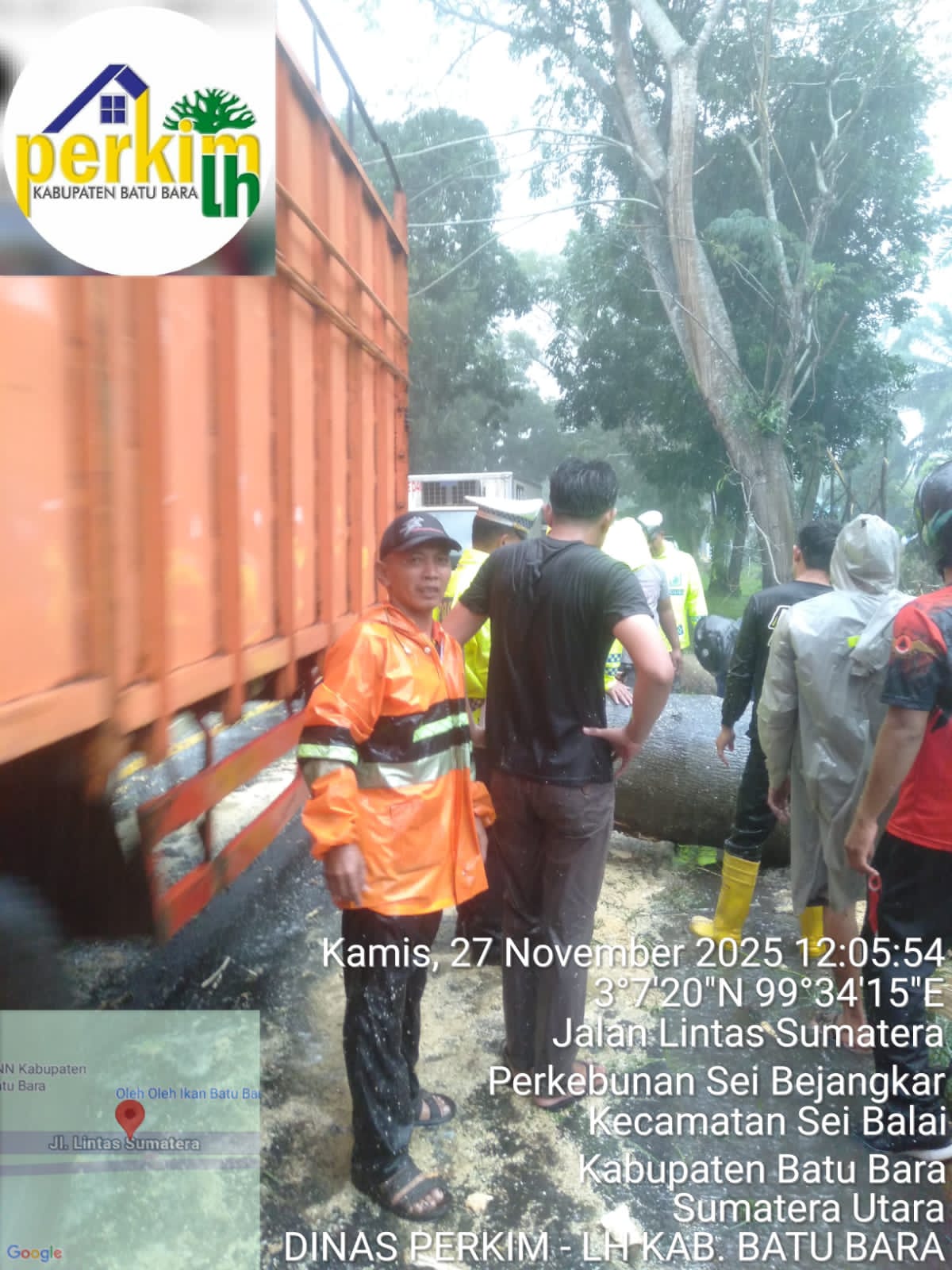 Central Publikasi.Com-Batu Bara Respons cepat pemerintah melalui Badan Penanggulangan Bencana Daerah (BPBD) Kabupaten Batu Bara bersama Dinas Perkim LH dan Satlantas Polres Batu Bara ditunjukkan dalam penanganan bencana pohon tumbang yang terjadi di beberapa wilayah Kabupaten Batu Bara, Kamis (27/11/2025).