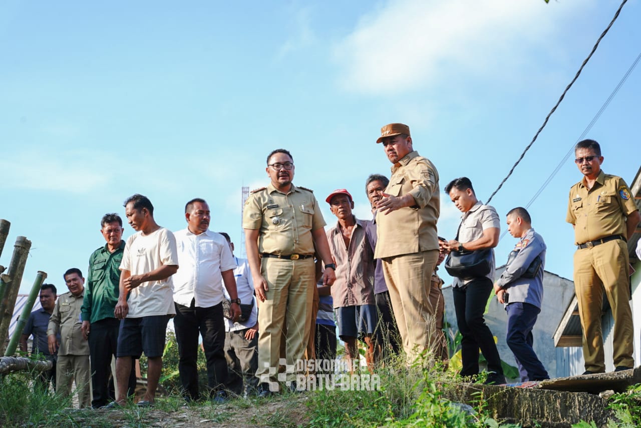 Central Publikasi.Com-Bupati Batu Bara, Bapak H. Baharuddin Siagian, SH, M.Si beserta Camat Lima Puluh dan jajaran Pemkab Batu Bara mengunjungi dan meninjau langsung daerah yang terkena musibah tanah longsor di Perumnas Lingkungan VII, Jalan Nirmala 3, Kelurahan Lima Puluh Kota, Kecamatan Lima Puluh, Selasa (7/10/2025).