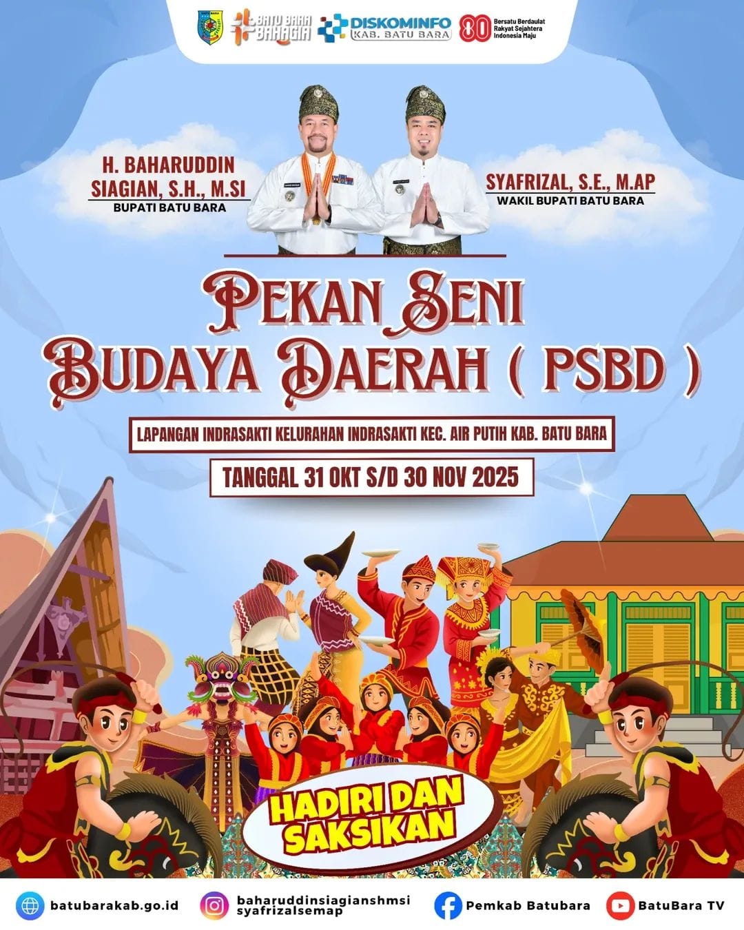 [23/10, 23.06] PAK.UCOk: Saya mengajak seluruh masyarakat Batu Bara untuk hadir berpartisipasi,serta menunjukkan kecintaannya terhadap budaya daerah,bersatu dalam keberagaman,kuat dan kompak dalam kebersamaan,ujar Syafrizal,Kamis (23/10/2025) saat hadir di lapangan melihat langsung pembangunan stsnd seluruh etnis yang ikut andil dalam PSBD kali inj