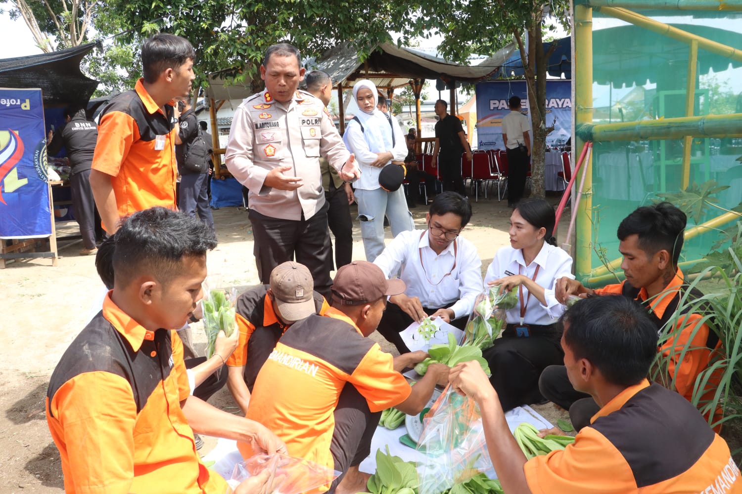 Di sela-sela kegiatan, AKBP Marganda Aritonang menyempatkan diri menyapa para warga binaan yang ditunjuk sebagai tamping (tahanan pendamping) untuk melaksanakan kegiatan pertanian. Dengan ramah, ia berjalan di antara tanaman sambil berbincang dengan para narapidana yang sedang bekerja.