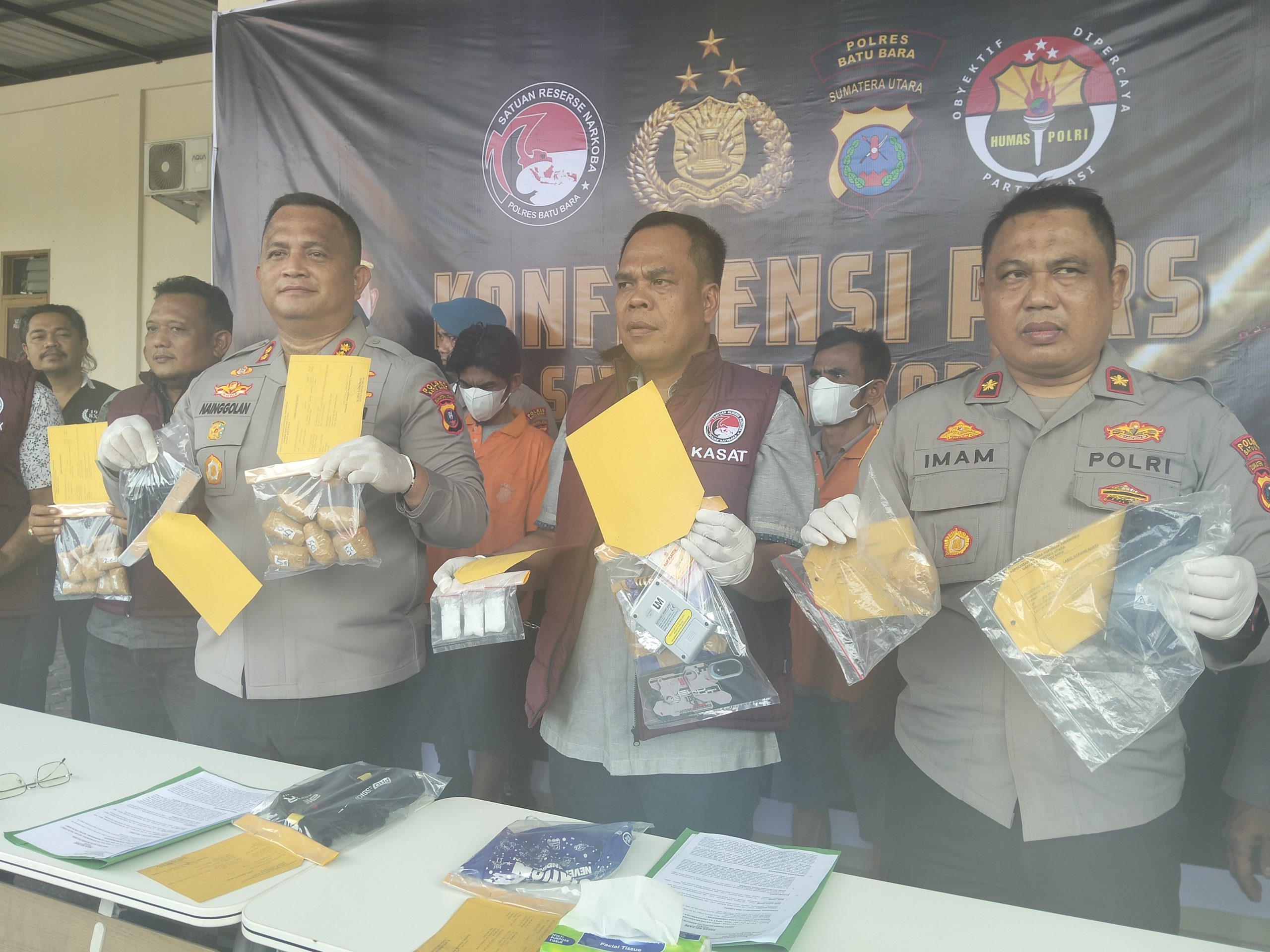 3 MHD. YUSRI: Umur 40 Tahun, Jenis Kelamin Laki laki, kewarganegaraan indonesia, Agama Islam, Pekerjaan Nelayan, Alamat: Dusun sampuma desa medang kec medang deras kab batu bara.Adapun yang di temukan Barang Bukti.