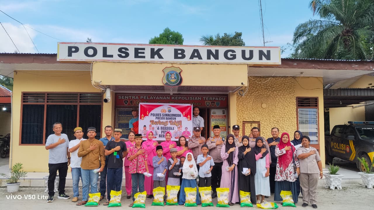 Puncak acara adalah pembagian takjil dan bingkisan kepada 10 anak yatim yang hadir. Kapolsek Bangun secara langsung menyerahkan santunan kepada setiap anak dengan penuh kehangatan.