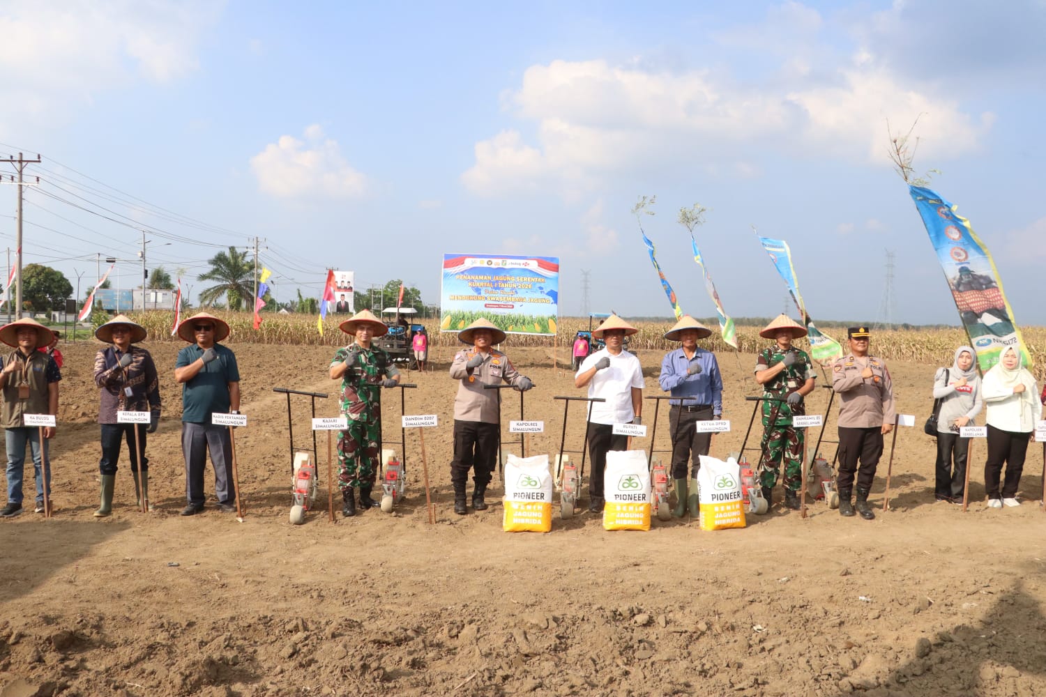 “Kekompakan Forkopimda Simalungun benar-benar terwujud dalam kegiatan penanaman jagung serentak kuartal I tahun 2026. Kapolres Simalungun AKBP Marganda Aritonang, SH, SIK, MM., Dandim 0207/Simalungun Letkol Inf. Gede Agus Dian Pringgana, S.Sos, MMAS, M.HAN., dan Ketua DPRD Simalungun Sugiarto, SH., bersama-sama memimpin penanaman jagung secara simbolis di Nagori Purba Sari, Kecamatan Tapian Dolok. Kegiatan dilaksanakan pada hari Sabtu, 7 Maret 2026, mulai pukul 15.00 WIB hingga selesai,” ungkap Kasi Humas AKP Verry Purba menekankan kekompakan.