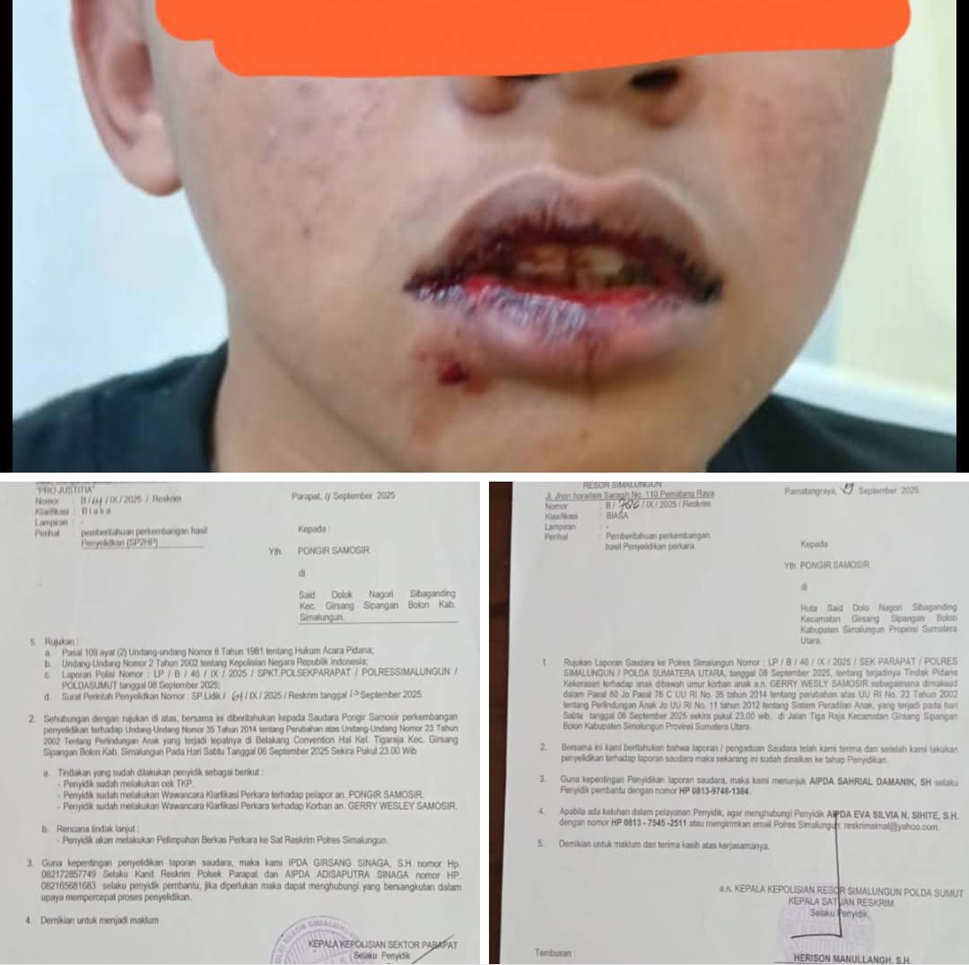 Terkait peristiwa penganiayaan itu, korban (GWS) bersama orang tuanya Pongir Samosir telah melaporkan kejadian itu pada Senin, tanggal 8 bulan September lalu ke Mapolsek Parapat, dengan LP/B/46/IX/2025/SPKT_POLSEKPARAPAT/POLRESSIMALUNGUN/POLDASUMUT tanggal 06 September 2025.