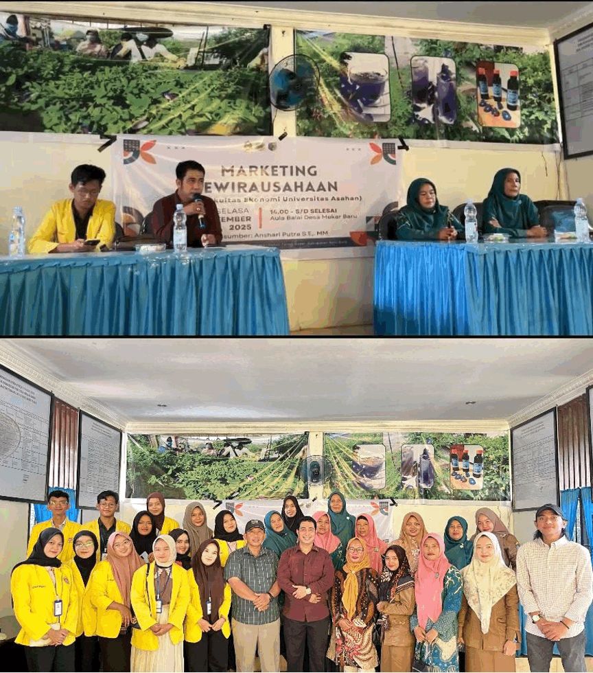 Central Publikasi.Com Mekar Baru:Mahasiswa Kuliah Kerja Nyata (KKN) Universitas Asahan mengadakan kegiatan Penyuluhan Marketing Kewirausahaan di Balai Desa Mekar Baru, Kecamatan Datuk Tanah Datar, Selasa 16 September 2025 Kegiatan ini diketuai oleh Taopik Hidayat dengan bimbingan Dosen Pembimbing Lapangan, Anshari Putra, S.E., M.M.