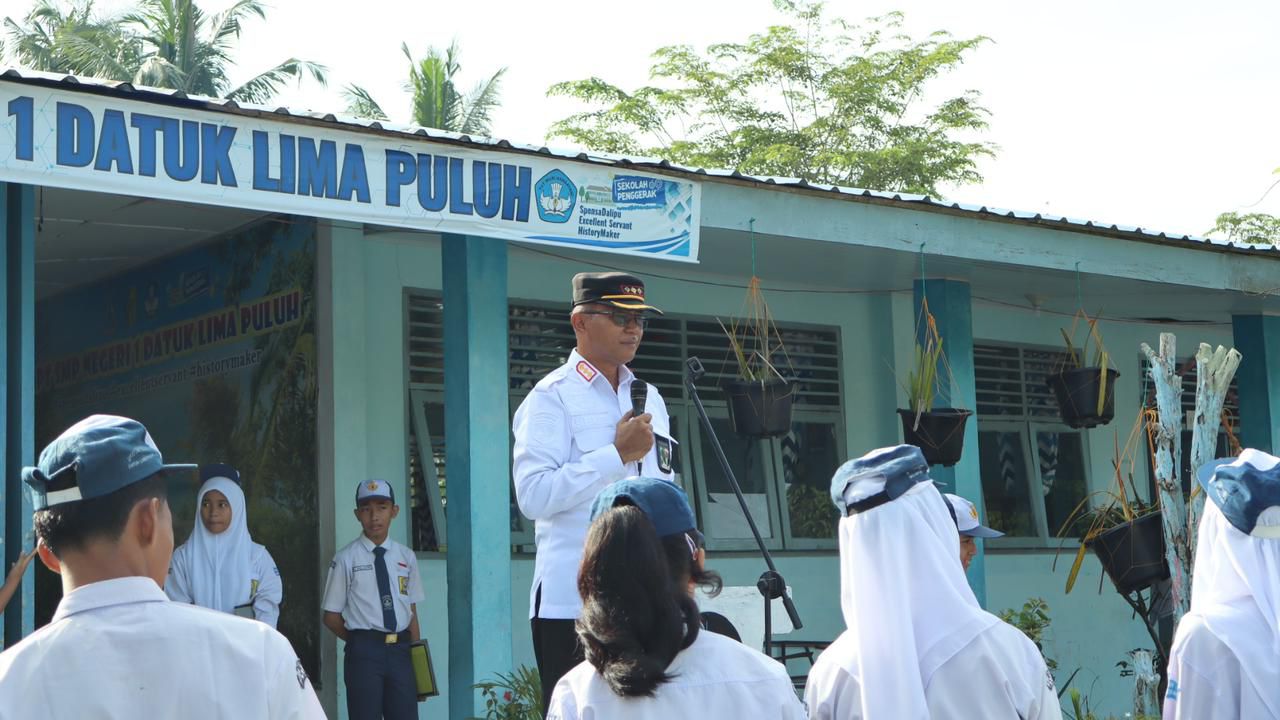 Central Publikasi.Com-Batu Bara:Kalapas Labuhan Ruku Soetopo Berutu kembali menunjukkan komitmennya dalam menggelorakan semangat anti narkoba di kalangan pelajar. Pada pelaksanaan upacara bendera di SMP 1 Datuk Limapuluh, Kalapas bertindak sebagai inspektur upacara dan menyampaikan amanat penting mengenai bahaya narkoba yang kini semakin mengkhawatirkan, khususnya di Kabupaten Batubara, Senin (17/11). Kehadiran Kalapas disambut hangat oleh para guru dan siswa yang antusias mengikuti kegiatan pembinaan ini.