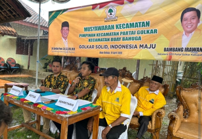Way Kanan-Central Publikasi.Com:Upaya memperkuat soliditas internal organisasi terus dilakukan Partai Golkar Kabupaten Way Kanan melalui agenda Musyawarah Kecamatan (Muscam) Pimpinan Kecamatan (PK) Buay Bahuga yang dipusatkan di Kecamatan Buay Bahuga, Kabupaten Way Kanan pada Minggu (19/4/2026). Dalam roda organisasi Partai Golkar Muscam menjadi bagian penting dalam memperkokoh struktur pengurus sekaligus mempererat kebersamaan antar kader di tingkat kecamatan.