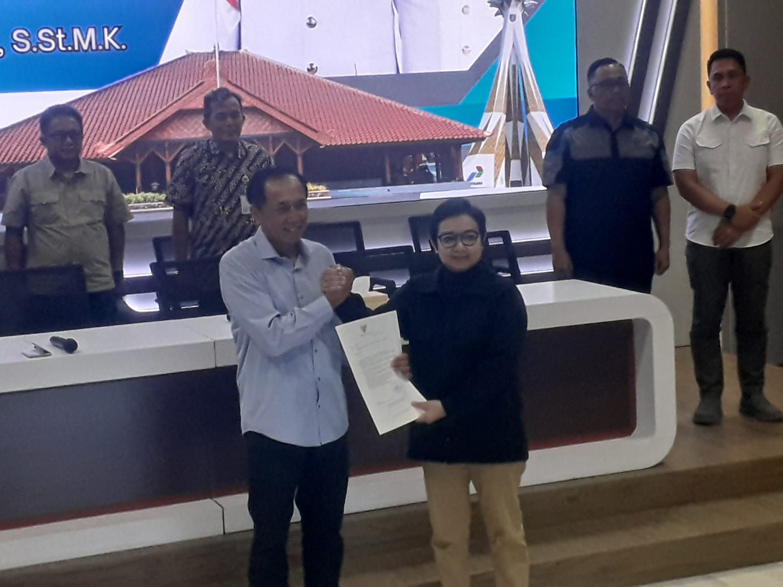 Dalam kesempatan itu, Iwanuddin Iskandar selaku Assisten Pemerintahan dan Kesra Setda Jawa Tengah menyerahkan surat keputusan (SK) Gubernur Jateng terkait penugasan Plt. Bupati Cilacap kepada Wabup Ammy.