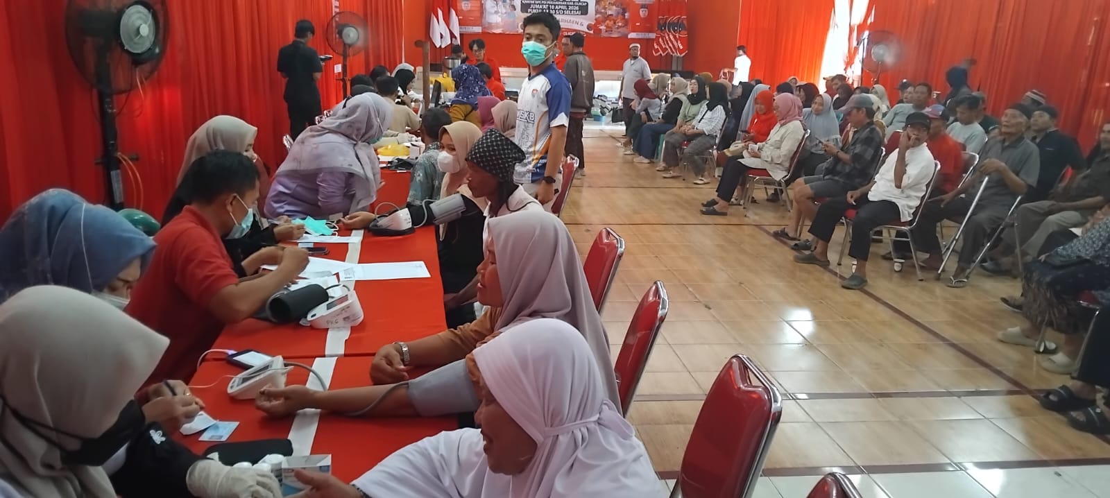 Dalam kesempatan itu, petugas kesehatan dari Puskesmas setempat dan PMI Cilacap dilibatkan, dibantu para kader partai, dan kegiatan ini digelar di kantor DPC PDI Perjuangan Cilacap pada Jumat (10/4/2026) siang.