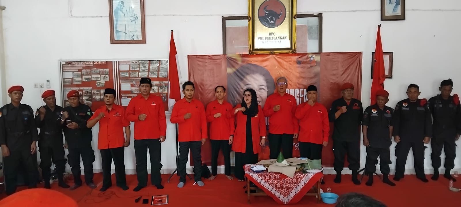 Adapun kegiatan yang digelar sederhana namun penuh keakraban ini, juga disertai dengan pemotongan tumpeng sebagai tanda turut merayakan momen ultah Megawati tahun ini.