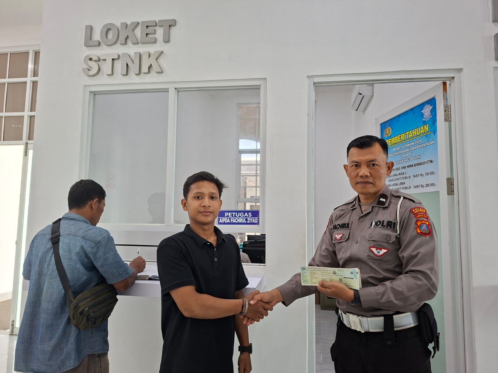 Petugas BPKB Aipda Hadi telah memberikan kepada masyarakat yang telah siap buku kepemilikan ( balik nama ) dan membawa tanda resi yang di mintai no hp kepemilikan supaya dapat di hubungin apa bila BPKB nya sudah siap .