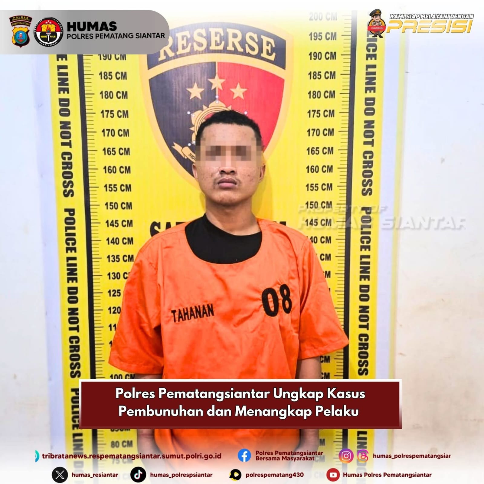 Central Publikasi.Com-Tempo dua hari saja setelah kejadian, Polres Pematangsiantar dipimpin langsung Kepala Satuan Reserse Kriminal (Sat Reskrim) AKP Sandi Riz Akbar S.Tr.K. S.I.K. M.H gerak cepat berhasil menangkap pelaku pembunuhan inisial VS (20) warga Jalan Gang Juhar Kelurahan Kahean Kecamatan Siantar Utara Kota Pematangsiantar, pada hari Minggu 18 Januari 2026 pagi subuh sekira pukul 05.00 Wib.