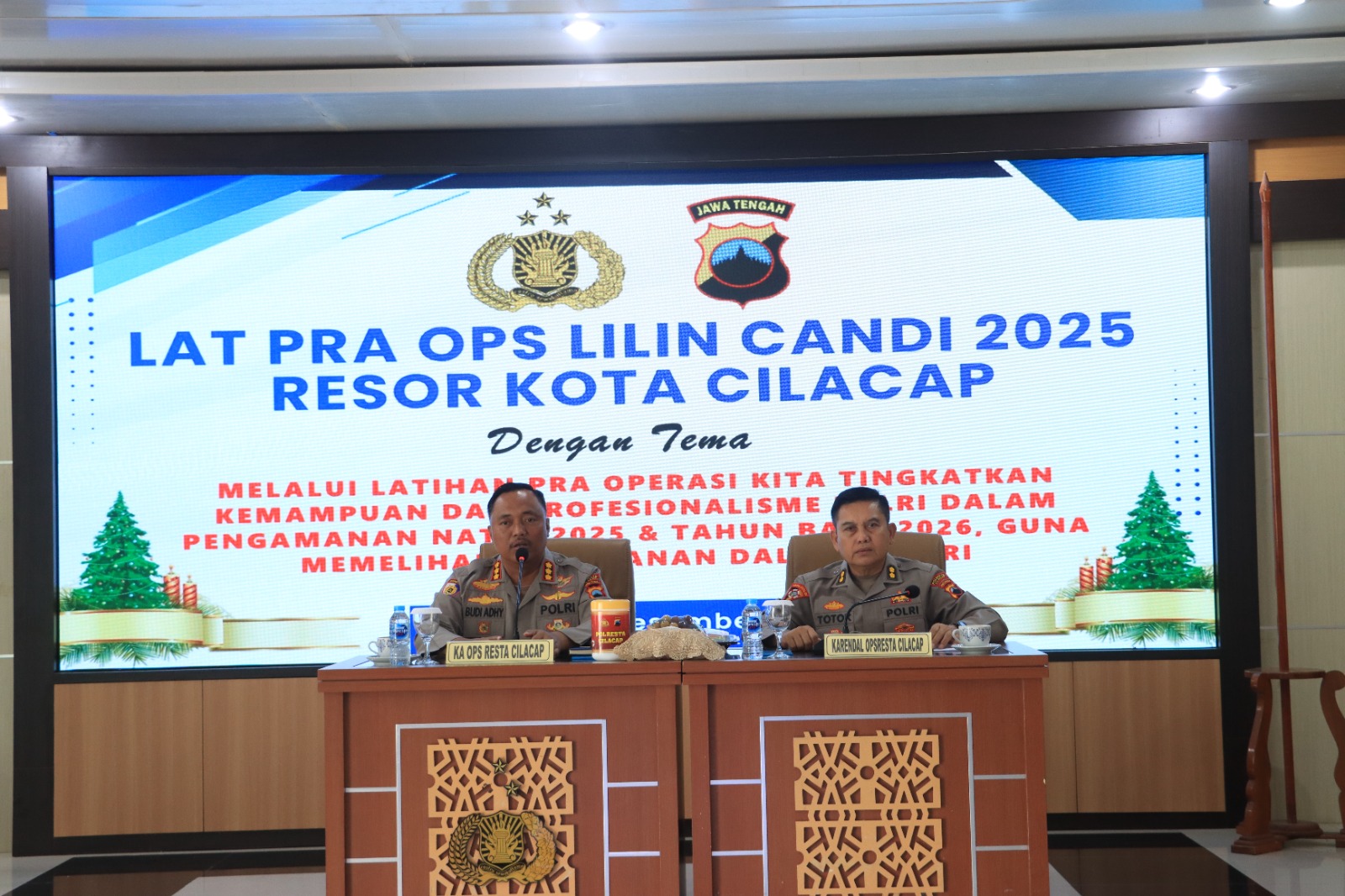 Central Publikasi.Com-Cilacap:Polresta Cilacap menggelar Latihan Pra Operasi (Latpraops) Lilin Candi 2025 di Aula Patriatama Polresta Cilacap, Kamis (18/12/2025). Kegiatan ini dilaksanakan sebagai bentuk kesiapan Polresta Cilacap dalam pengamanan Natal 2025 dan Tahun Baru 2026.
