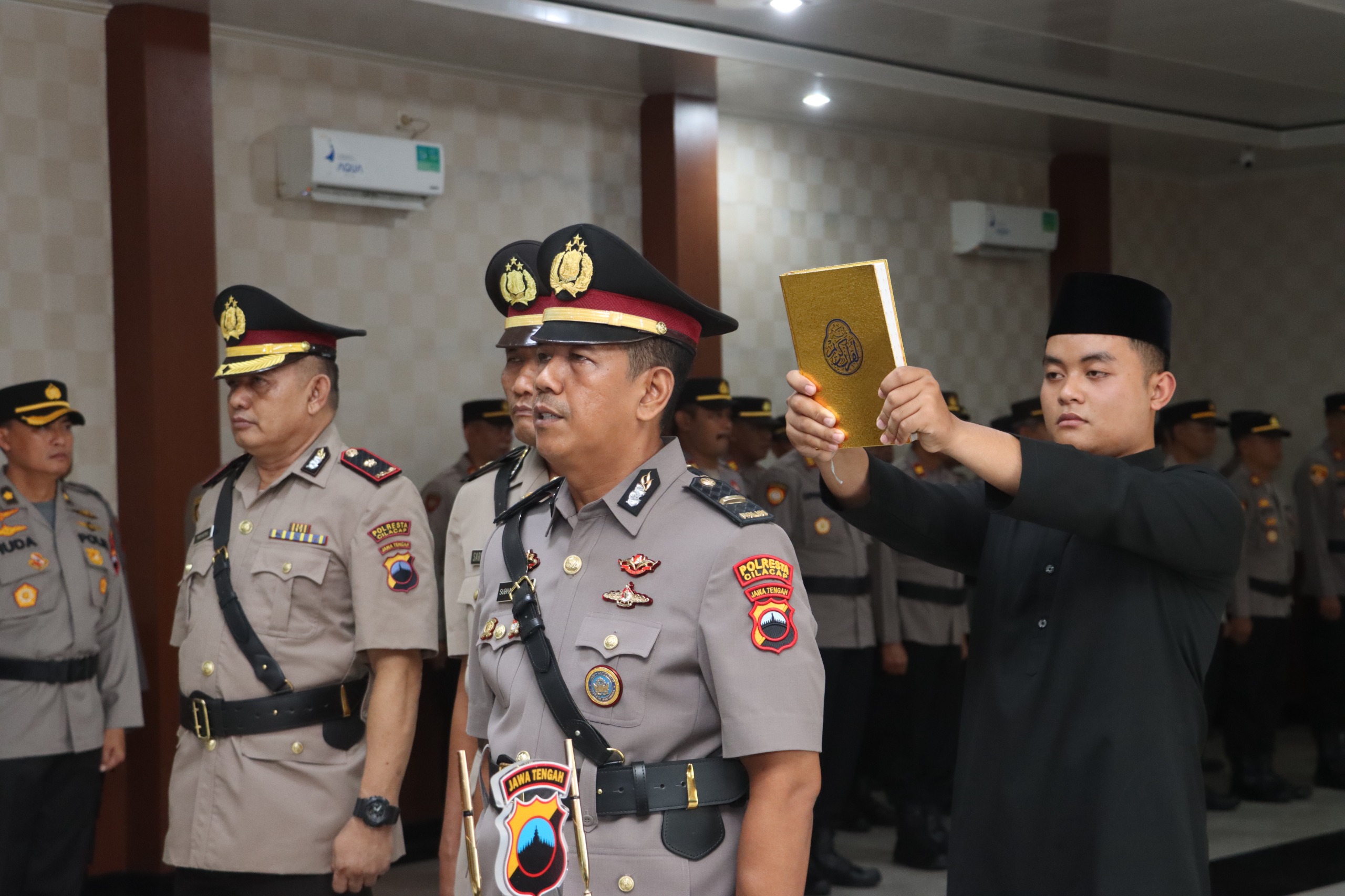 Central Publikasi.Com-Cilacap:Polresta Cilacap menggelar upacara serah terima jabatan (sertijab) dua kapolsek dan laporan kenaikan pangkat pengabdian Polri di Aula Patriatama, Selasa (30/7/2025).