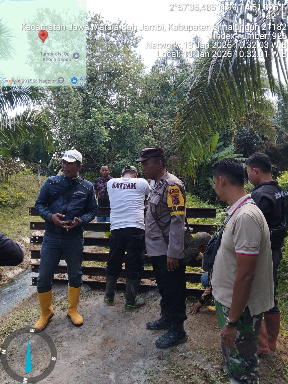Central Publikasi.Com-Simalungjn:Polres Simalungun melalui Bhabinkamtibmas Polsek Tanah Jawa berhasil memediasi sengketa pemalangan jalan antara warga Nagori Manrayap Bayu dengan pihak PTPN IV Unit Dolok Sinumbah, Selasa (13/1/2026). Pemalangan yang sempat menutup akses masyarakat di pinggir Sungai Bah Tongguran akhirnya dibuka setelah mediasi melibatkan Camat Hutabayuraja dan aparat keamanan.
