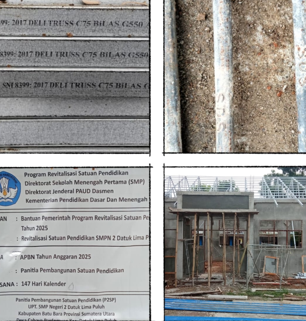 Proyek Revitalisasi SMP Negeri 2 Dusun V, Desa Cahaya Pardomuan, Kecamatan Datuk Lima Puluh, Kabupaten Batubara, Sumatera Utara diduga kuat menyimpang dari Petunjuk Teknis (Juknis) yang telah ditentukan.