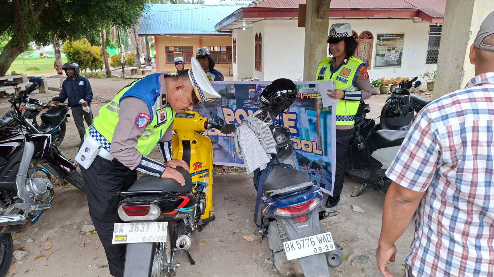 Kegiatan dimulai pukul 06.45 WIB dan dipimpin oleh Kanit Kamsel Sat Lantas Polres Simalungun IPDA Win Okto Silitonga, S.H., bersama sejumlah personel Satlantas lainnya. Dalam kesempatan tersebut, petugas memberikan edukasi keselamatan berkendara kepada para pelajar serta melakukan pengecekan kendaraan bermotor yang digunakan siswa.