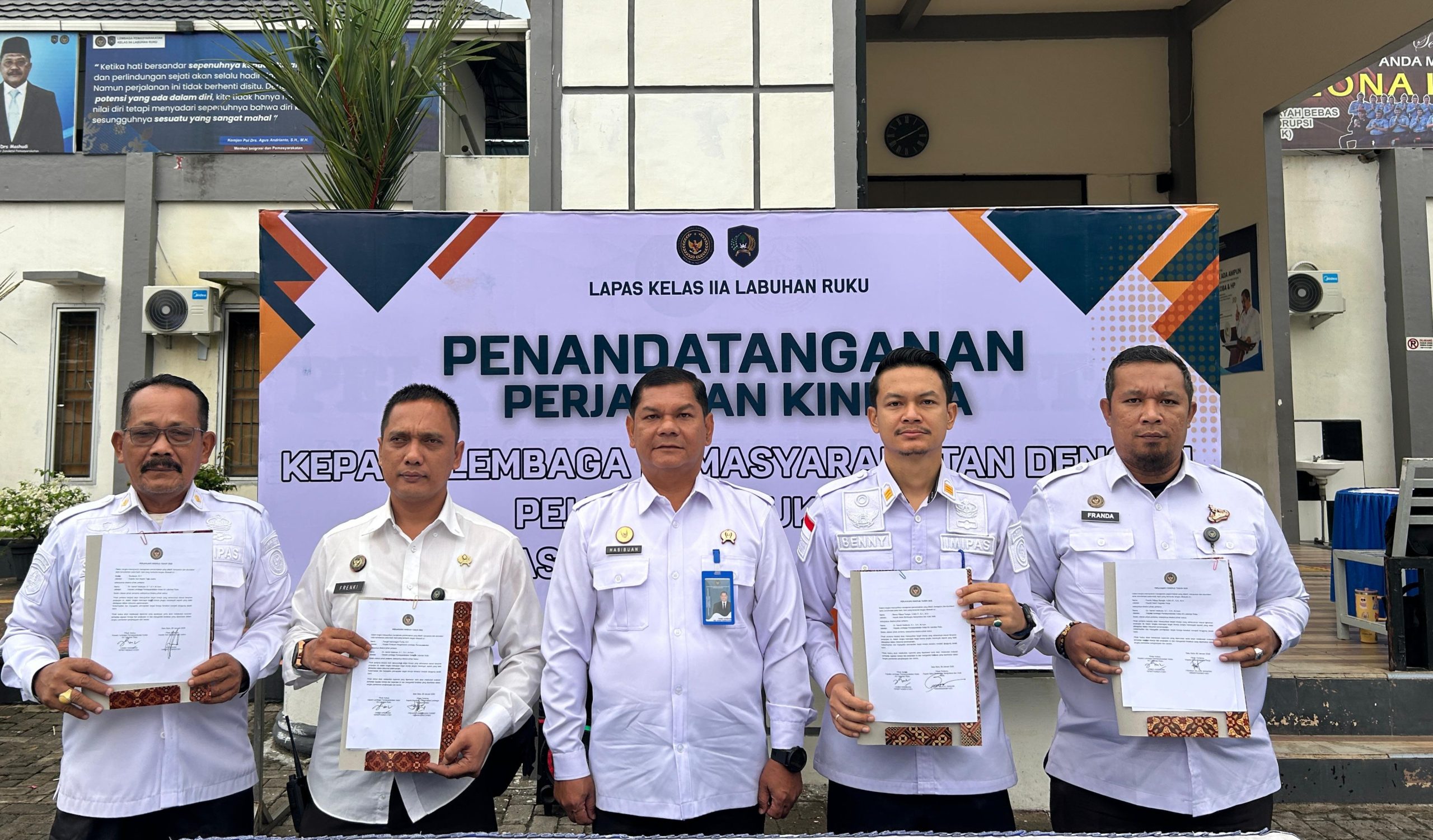 Kegiatan penandatanganan berlangsung dengan tertib dan khidmat di lingkungan Lapas Kelas IIA Labuhan Ruku. Seluruh rangkaian acara disaksikan langsung oleh Kalapas Labuhan Ruku sebagai bentuk pengawasan dan dukungan pimpinan terhadap peningkatan kinerja jajaran struktural.
